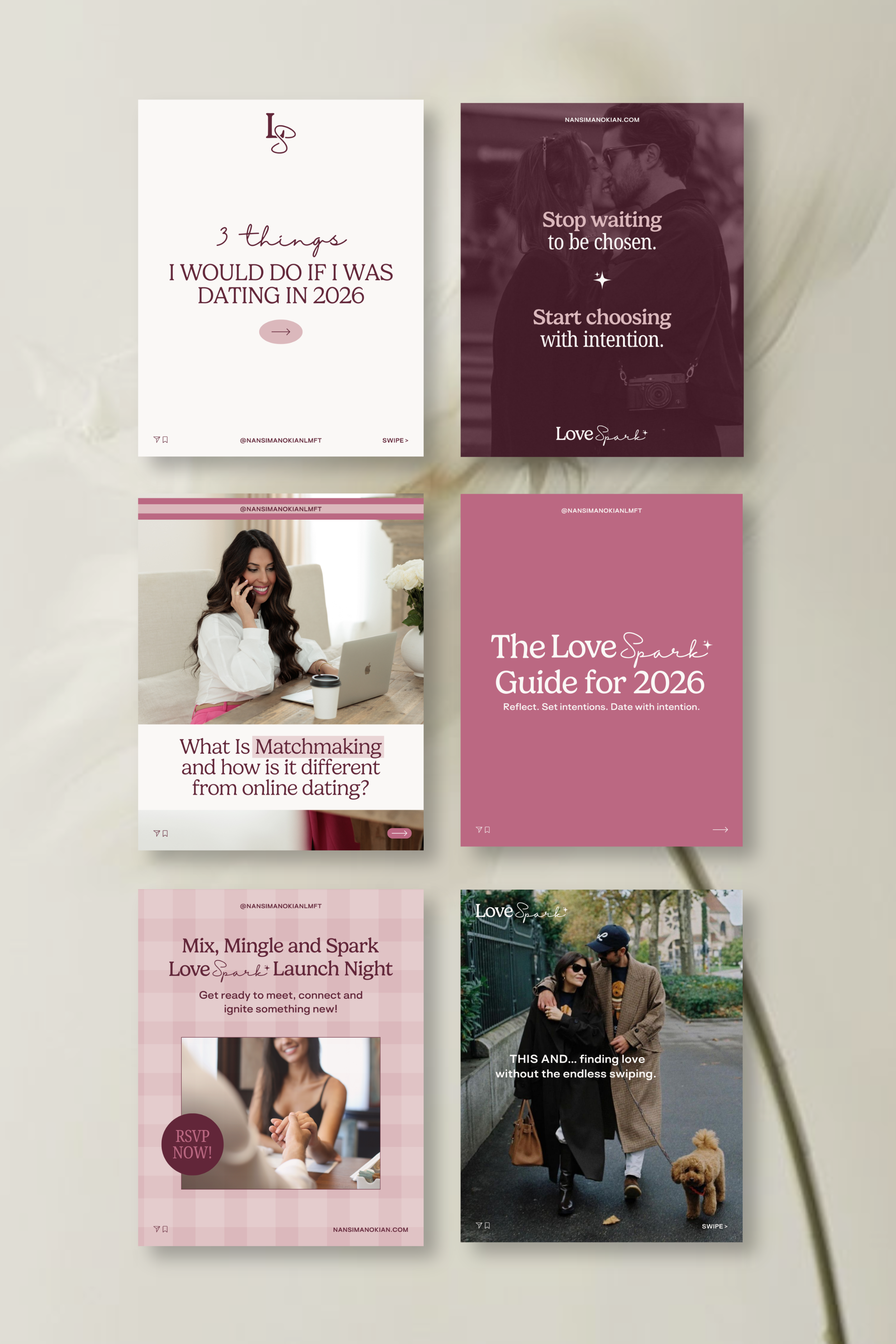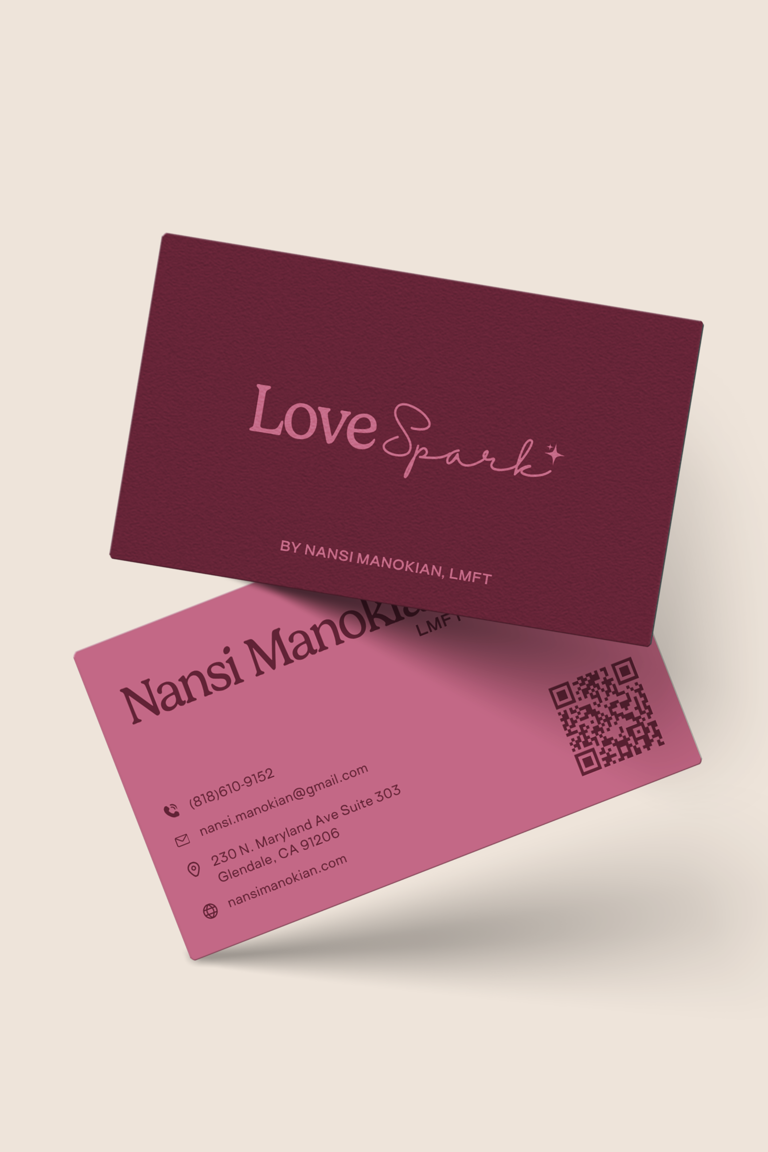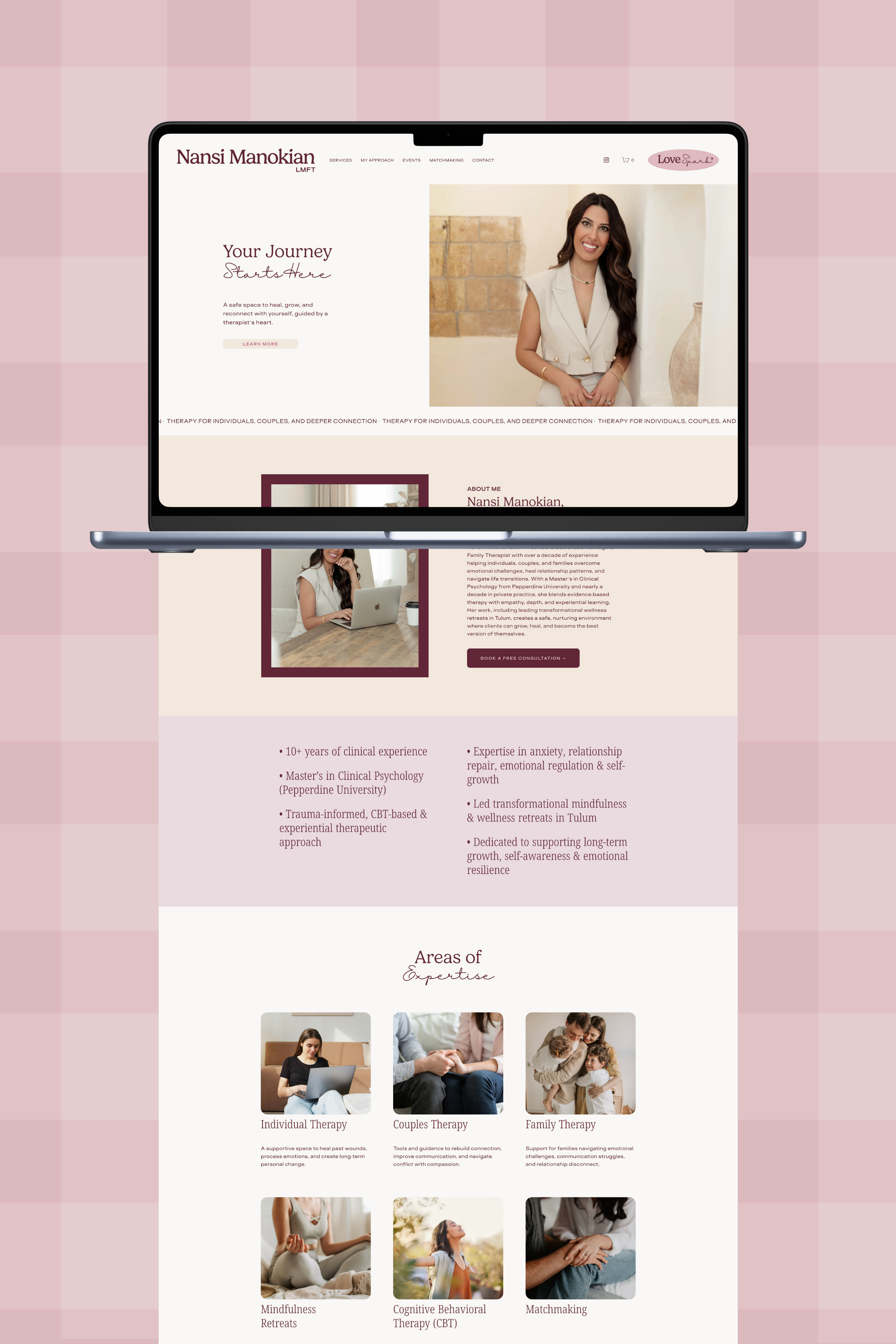 Develop brand identity, website design, and social media presence for Nansi Manokian, LMFT (Love Spark) — a relationship and couples therapist specializing in connection, intimacy, and communication. The work aimed to reflect her warm, insightful, and evidence-based approach, creating a cohesive and inviting digital experience across platforms.